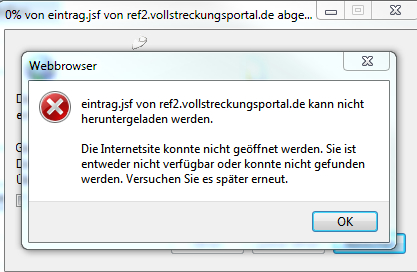 1. Problem: Beim Aufruf des Vollstreckungsportals wird folgende Meldung angezeigt: