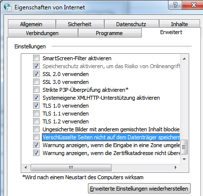 Lösung: Bei den Internetoptionen (Start / Systemsteuerung / Internetoptionen) auf der Registerkarte Erweitert den Haken bei „Verschlüsselte Seiten nicht auf dem Datenträger speichern“ entfernen!