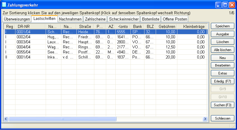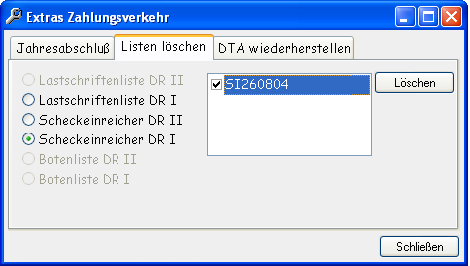 , damit werden die Datensätze nicht gelöscht, der Vorgang kann noch einmal wiederholt werden. In diesem Fall dürfen erzeugte Ausdrucke und Datenträger natürlich nicht verwendet werden !Ausgabe von für Lastschriften, Nachnahmen, Zahlscheine, Scheckeinreicher und Botenlisten: