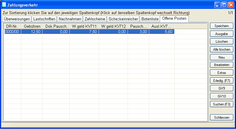 ) und für Neuanlagen spezielle Eingabemasken angezeigt (siehe Überweisungen).Offene Posten: