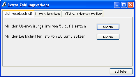 klicken, wird Ihnen der folgende Dialog angezeigt:Hier können Sie die Nummer der Überweisungs- oder Lastschriftenliste zurücksetzen (falls vorhanden)