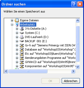 Wenn der Schalter DTA-Verfahren (siehe oben) auf die Einstellung per Datenträger eingestellt wurde, werden nur Laufwerke mit Wechelsmedien angezeigt, bei der Einstellung auf separate Software können Sie einen beliebigen Speicherort für die Ausgabedatei angeben (siehe nächstes Bild).