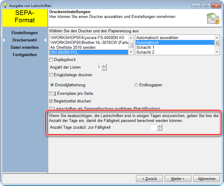 Seite 2 des Assistenten der Ausgabe von Lastschriften: