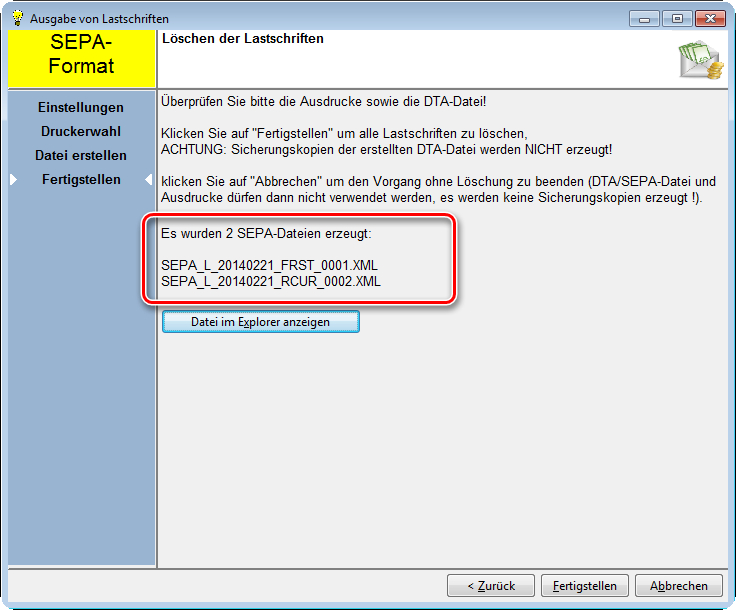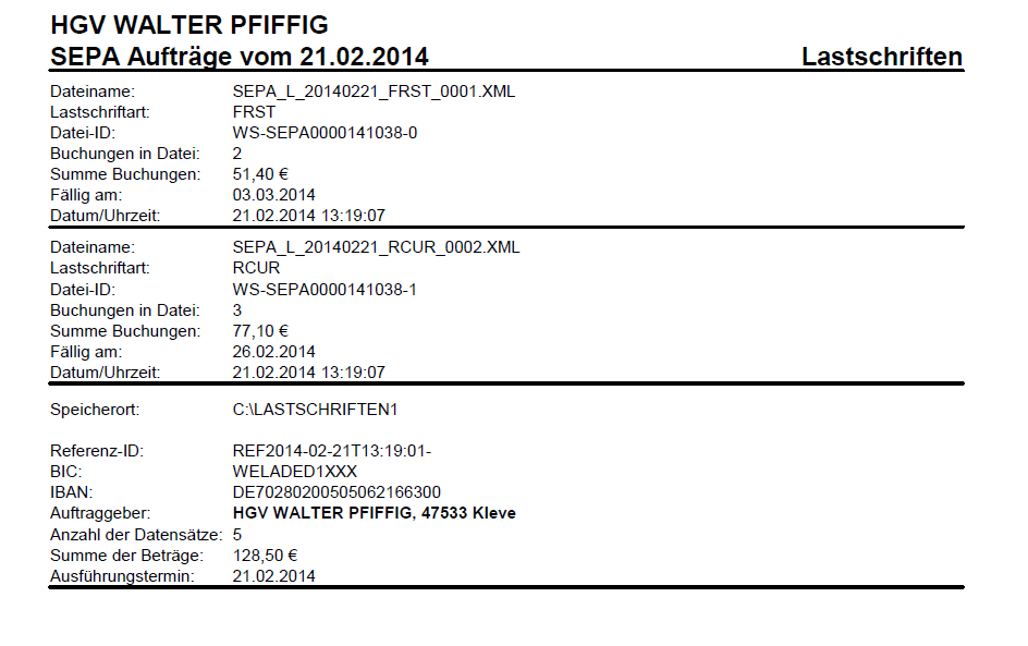 Da es keine Mischung der SEPA-Lastschrifttypen geben darf, werden je nach Lastschriftentyp immer die entsprechenden einzelnen Dateien erzeugt.