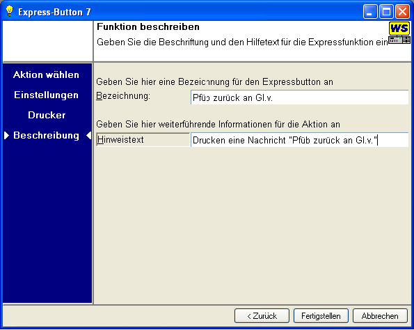 Der Assistent führt Sie in wenigen Schritten durch die Konfiguration für die Benutzerdefinierten Expressfunktionen: