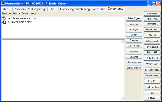 Auf der Seite 7 finden Sie ein Dokumentenmanagement für jede einzelne Akte.